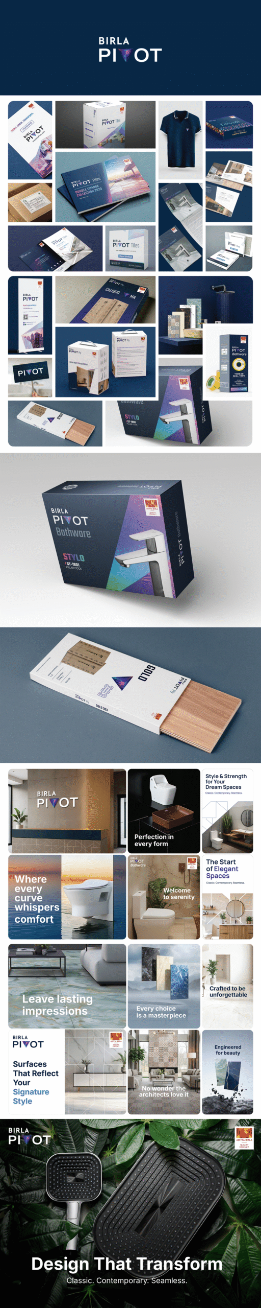 The design language revolves around a clean geometric identity, inspired by the concept of a pivot — symbolizing transformation, balance, and modern design thinking. The triangular brand element acts as the core visual motif across all brand touchpoints.